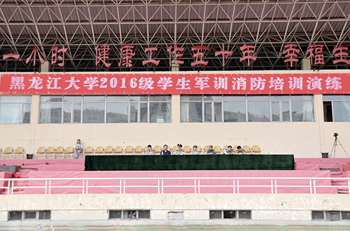 9月7日上午,我校2016级学生军训消防培训演练活动在我校2号运动场举行。哈尔滨市公安消防支队南岗大队教导员黄艳鸣、参谋长王毅、消防官兵和我校安全保障部、校团委、学工部相关负责同志以及及我校2016级学生代表参加了此次消防演练。