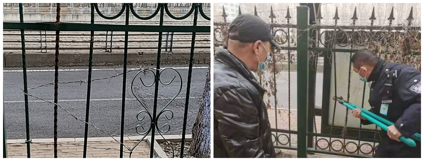 一是加固围墙,对校园周边进行时时巡查,对破损栅栏进行补修,对间距较宽栅栏进行间距矫正。二是在校园内外联通处悬挂醒目标语,增加抗疫标语的提示作用和警示力量。三是在学府路正门,测绘路大门,北二门、禹志园大门和C区大门增设5个防疫网络监控摄像头,在战“疫”道路上起着提前预防、精准布控的作用。四是强化校园巡逻。安全保障部采取定点看守、定时巡逻机制,起到良好警示作用。自封校以来,共处置翻越护栏等违规入校人员8人,阻止违规出校40人。对违反规定的入校人员进行批评教育后移交公安机关处理、对违反规定的师生通报至学工部门和纪检部门处理。彻底阻断师生员工与社会人员产生交集,严格执行校园防控标准,维护良好的校园环境的安全稳定。