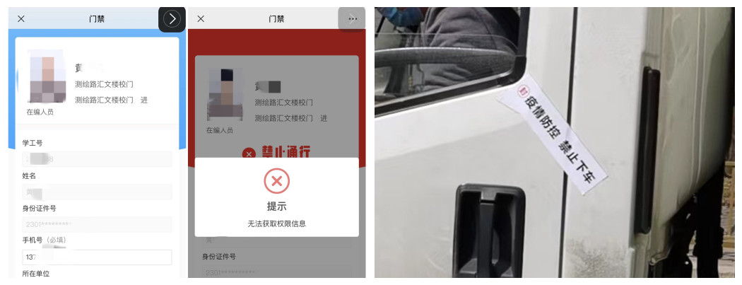 校门是疫情防控第一道防线,关乎疫情防控成败,为此学校疫情防控领导小组专门召开会议,决定每个校区只保留一个校门通行,实行封闭管理。一是全校师生员工校园码赋红码,实行通行证管理,相关校领导、职能部门工作人员住校办公,封闭管理期间,与校内学生一样,禁止外出;二是只允许保供车辆及相关工作人员通行。保供车辆按照无接触配送原则,驾驶员禁止下车,车门位置粘贴封条标签,出具二级单位联系单及驾驶员48小时内核酸检测阴性证明方可进出。三是禁止外来人员进入校园。为此,全体安保人员进入应急状态,实行干警包岗,安保人员24小时值班值守机制,严格履行查验证、登记手续,强化校门管控。