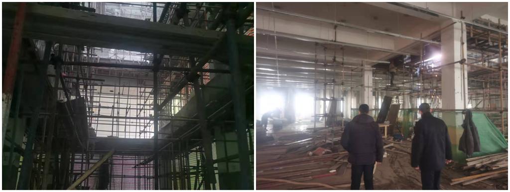 检查人员依次对丽泽园餐厅滚梯及三、四楼维修工地的重点部位进行安全检查。重点检查了建筑工地的封闭管理、临水临电、脚手架、电气焊安全等施工措施。详细查看重点施工部位后与负责人沟通,疫情期间建筑工地要做好防护工作,施工区域要进行封闭管理,施工人员要按时进行核酸检测。针对施工现场发现的问题,要求施工方当场改正,施工安全由专人负责,杜绝高空坠物,脚手架坍塌、工人坠伤、杂物失火等安全隐患,遇到突发情况要有应急措施,克服侥幸心理,做到防患于未然。