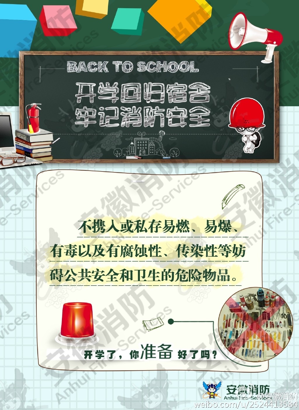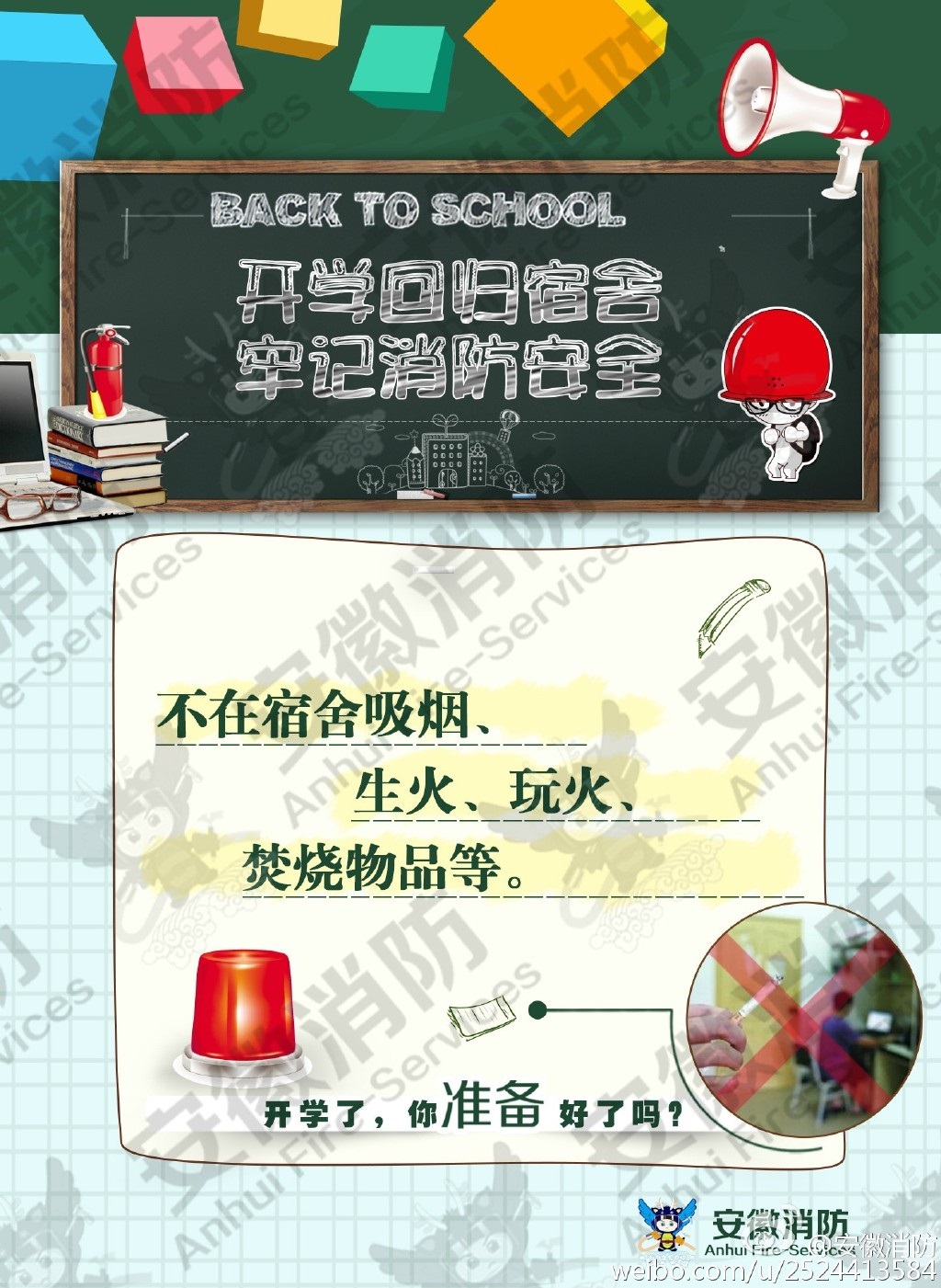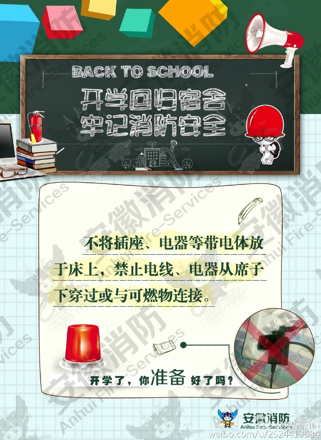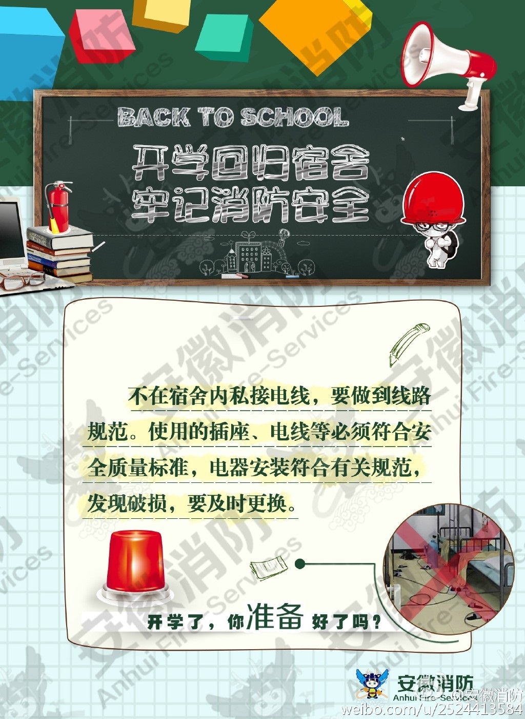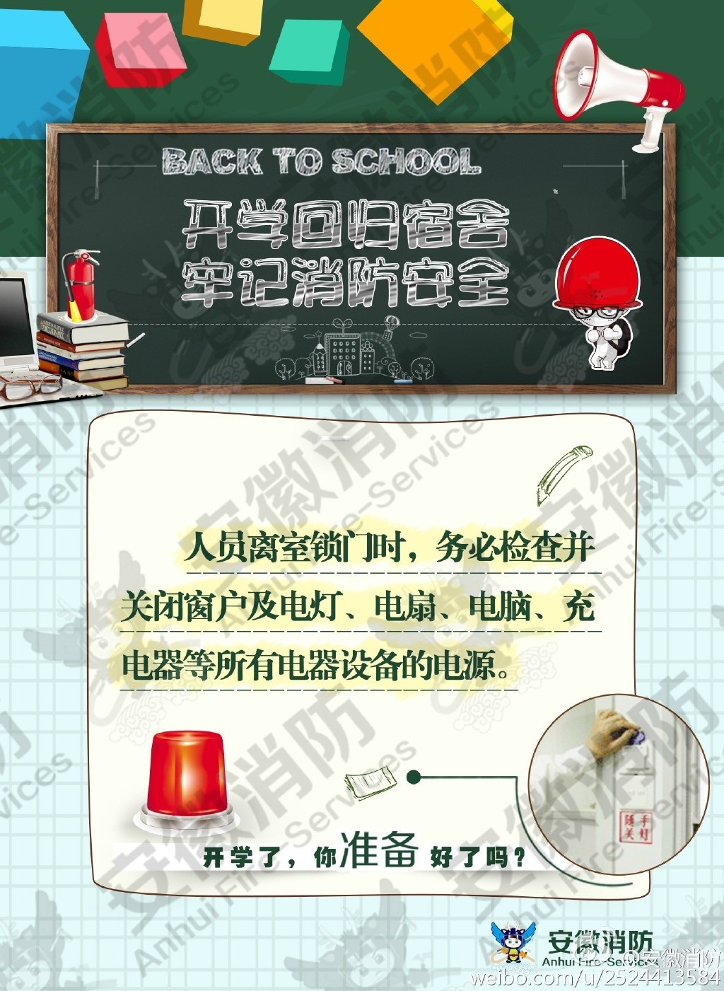 离开家里安乐窝,重回集体大宿舍!先给大家上一堂安全课:宿舍舒适是其次,安全居住摆第一!学校火灾,60%至70%发生在宿舍等人员活动较为集中的场所。因此,要时刻提高警惕,牢记消防安全。